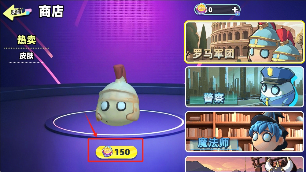 1、进入商店界面,选择你喜欢的皮肤,如“罗马军团”,并查看价格。