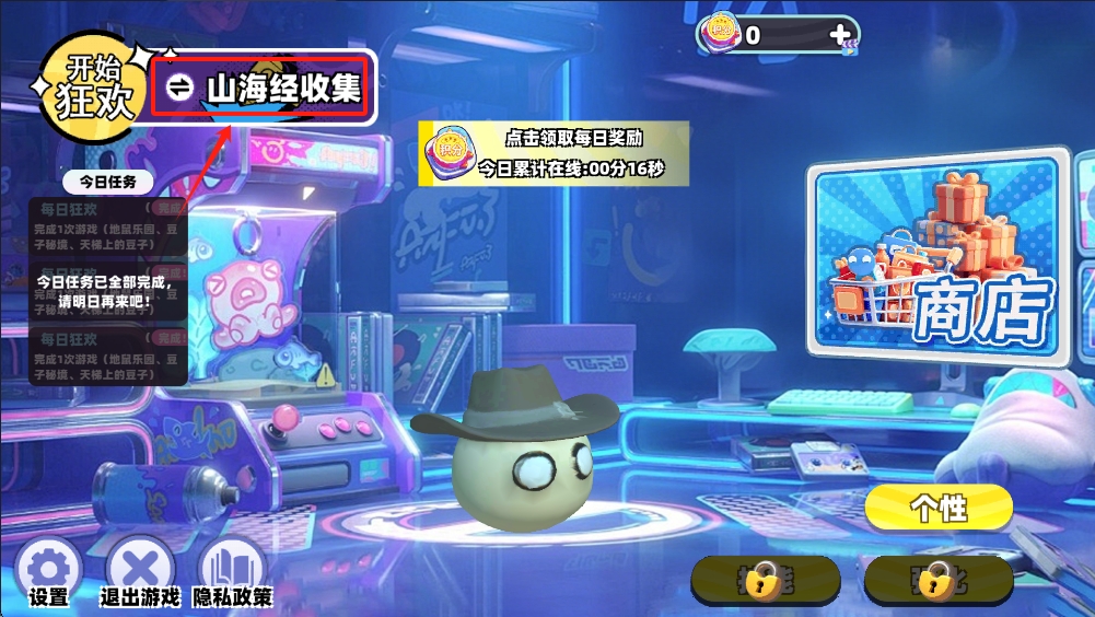 2、在主界面,点击“山海经收集”按钮,查看你的任务和奖励。
