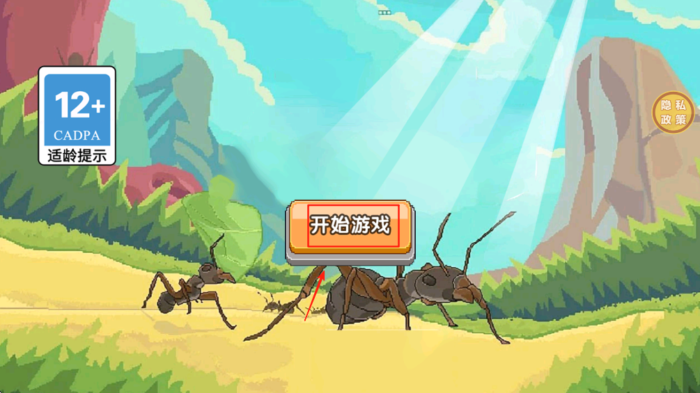 1、在游戏开始时,你会看到蚂蚁在沙滩上,点击“开始游戏”按钮进入下一步。