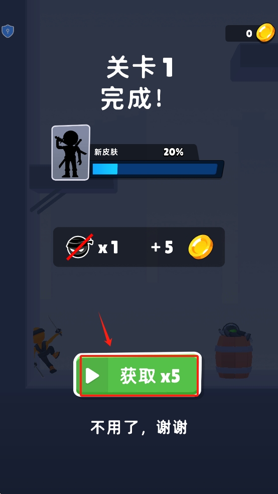 4、完成关卡后,点击“获取x5”领取奖励。