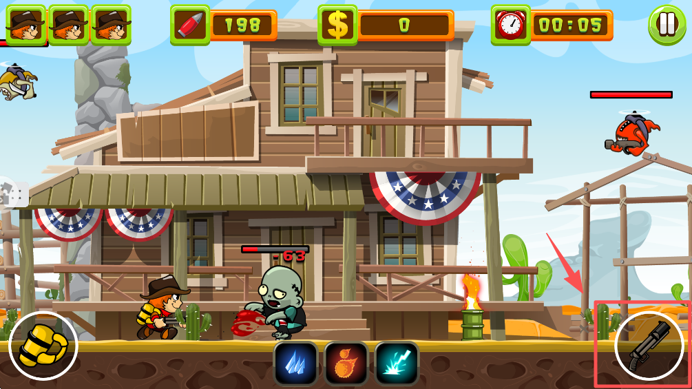 3、点击屏幕控制角色射击僵尸。这是游戏中的基本操作。