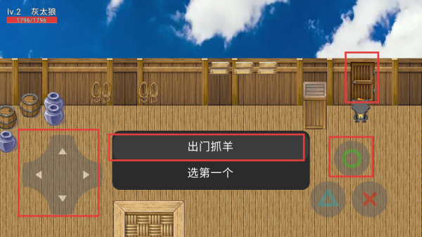 2、点击十字键移动灰太狼到家门前,再点击绿色按键确认【出门抓羊】。