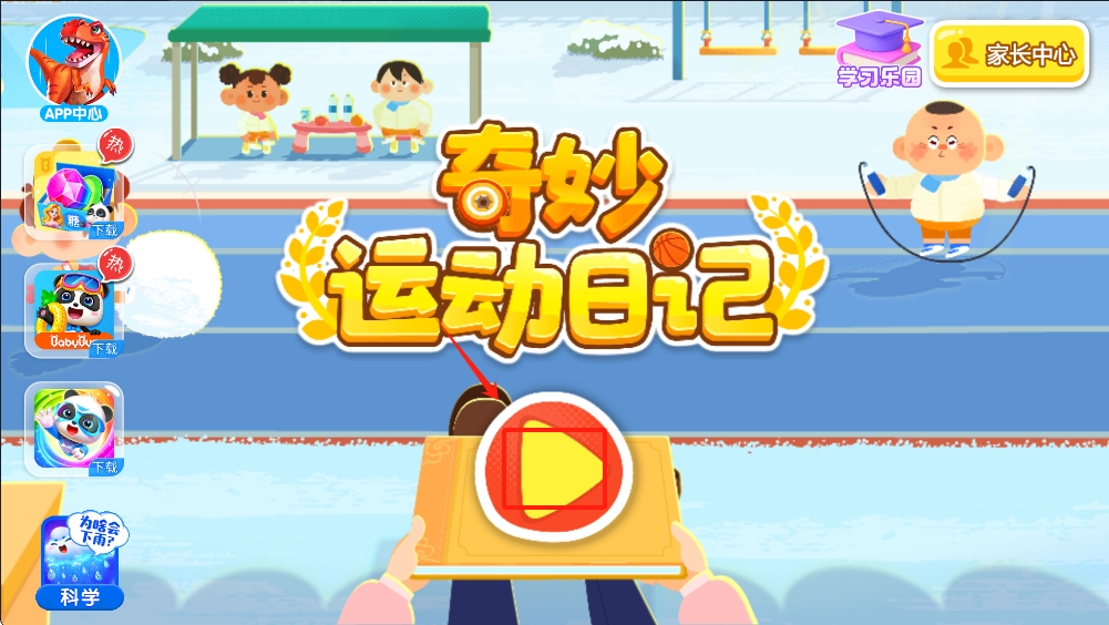 1、打开应用后,点击主界面上的 “奇妙运动日记” 按钮,进入游戏。