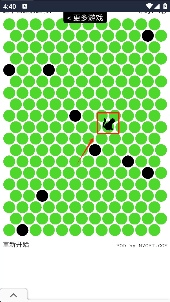 围小猫这游戏,带点围棋围堵的味儿,你得在步数用完前,把小猫咪困在中间,别让它溜出包围圈。关键在于琢磨它下一步往哪跑,提前把路堵上。算不准让它逃了,这关就过不去啦,挺考验预判和布局的小游戏。无论您是策略游戏爱好者,还是寻找休闲益智小游戏的玩家,这个游戏都能提供令人满意的挑战和愉快的体验。