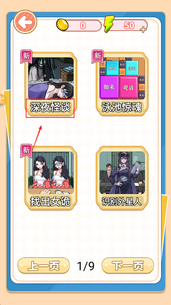 2、在关卡选择界面,点击你想要挑战的关卡,如“深夜怪谈”。