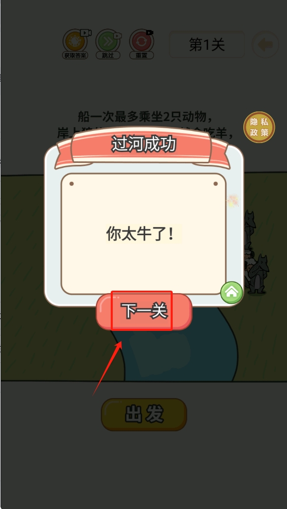 4、完成当前关卡后,点击“下一关”按钮进入下一关。