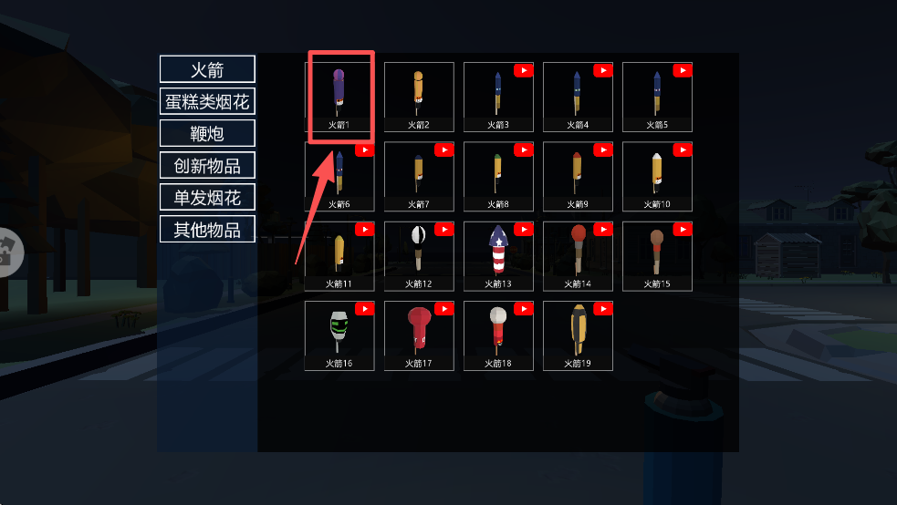 3、在火箭选择界面,点击你想要的火箭类型,准备进行燃放测试。