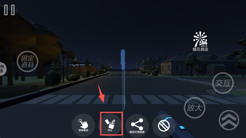 4、在游戏内,点击“点火”按钮开始燃放,观察烟花效果。