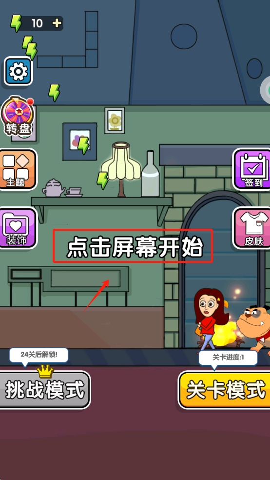 2、点击屏幕开始游戏,进入关卡挑战,这是进入游戏关卡的第一步。