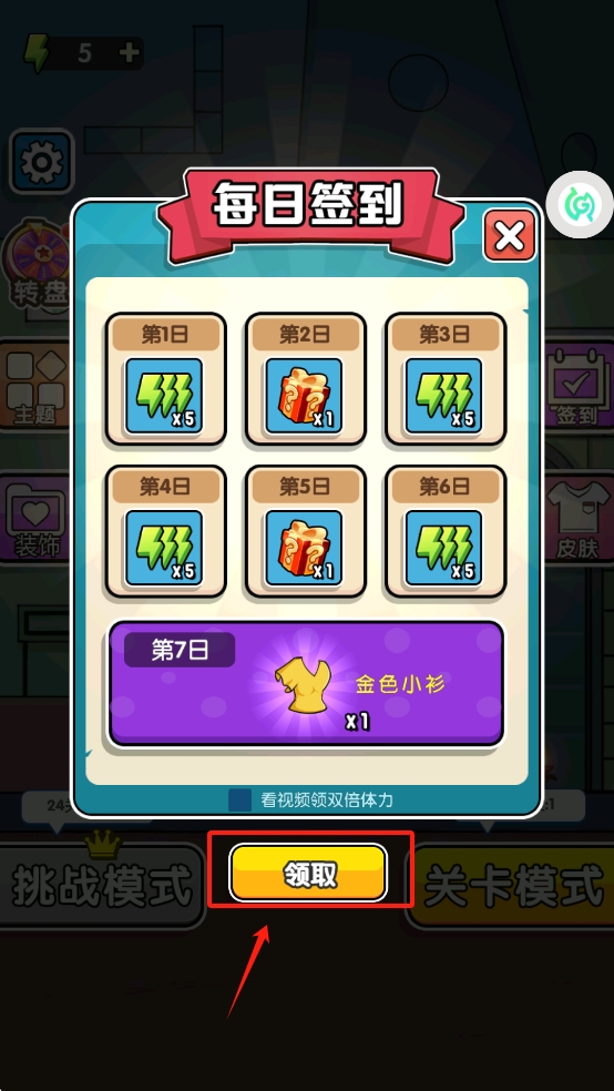 1、点击“领取”按钮,获取每日签到奖励,不要忘记每天领取哦。
