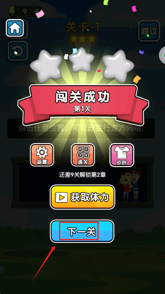 4、完成关卡后,点击“下一关”按钮,继续挑战。通关后。