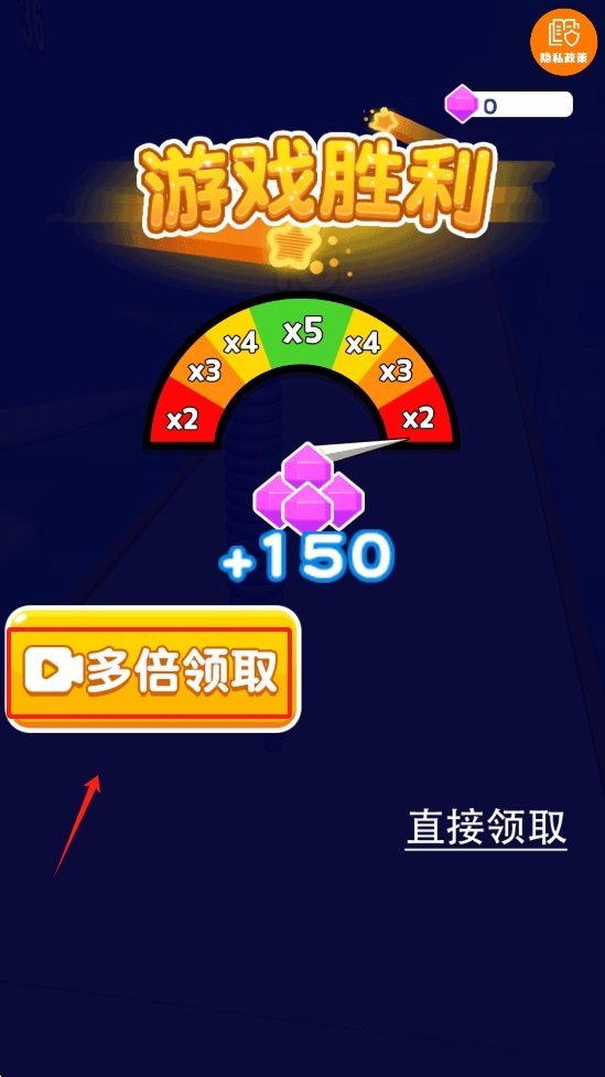 3、游戏胜利后,点击“多倍领取”按钮,获取额外奖励。