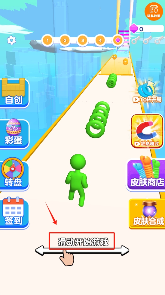 1、滑动屏幕下方的箭头,控制角色开始游戏,进入跑酷挑战。