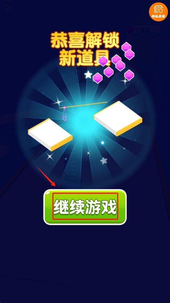 4、解锁新道具后,点击“继续游戏”按钮,使用新道具开始新一轮挑战。