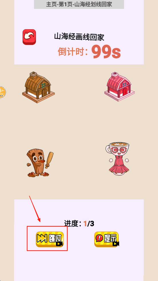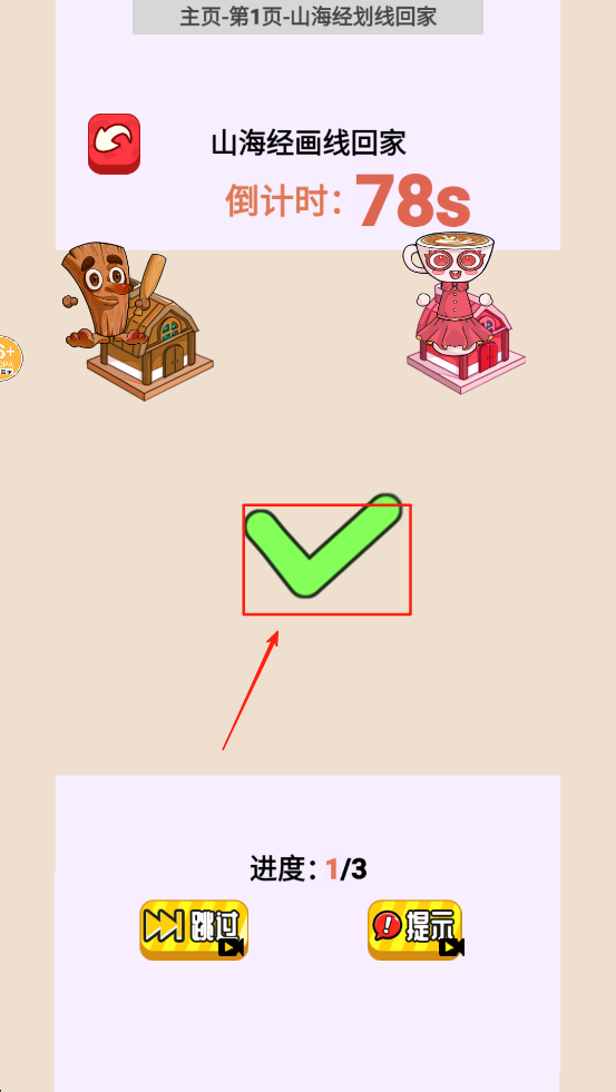1、在游戏大厅界面,选择“山海经划线回家”游戏,点击进入。