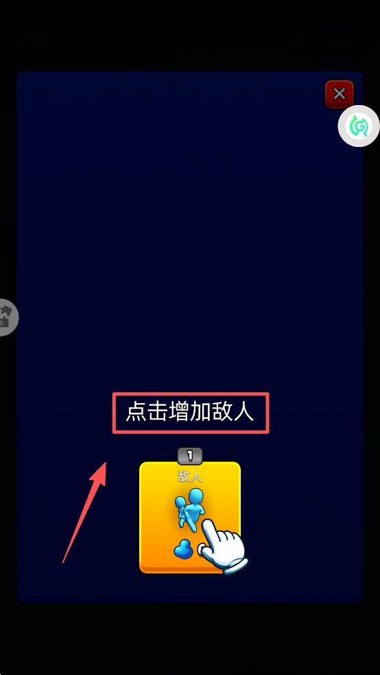 1、首先,点击“点击增加敌人”按钮,添加更多敌人到游戏中。