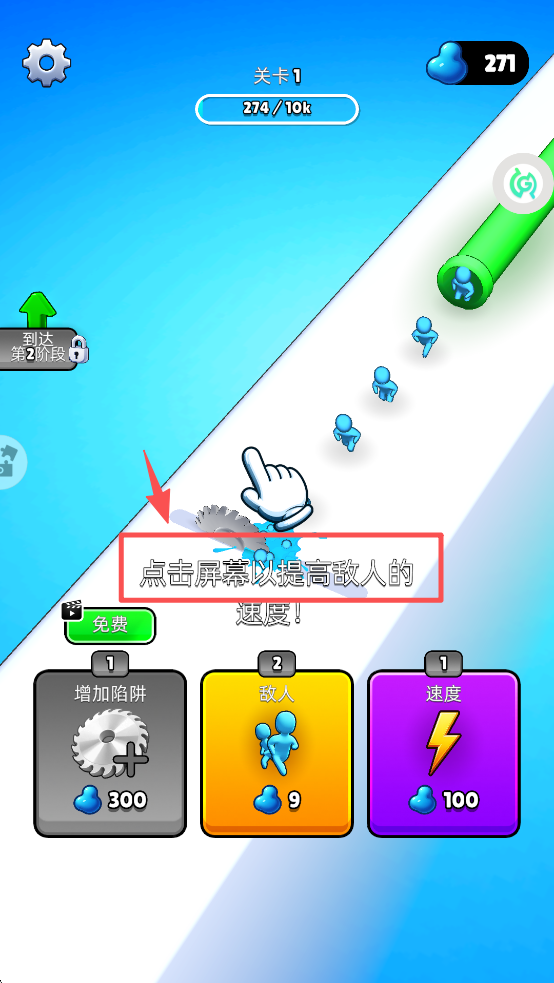 2、接着,点击屏幕以提高敌人的速度,挑战更高难度。