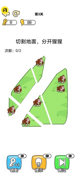 3.游戏中玩家需要解决一个又一个的难题,帮助猩猩划分地盘。