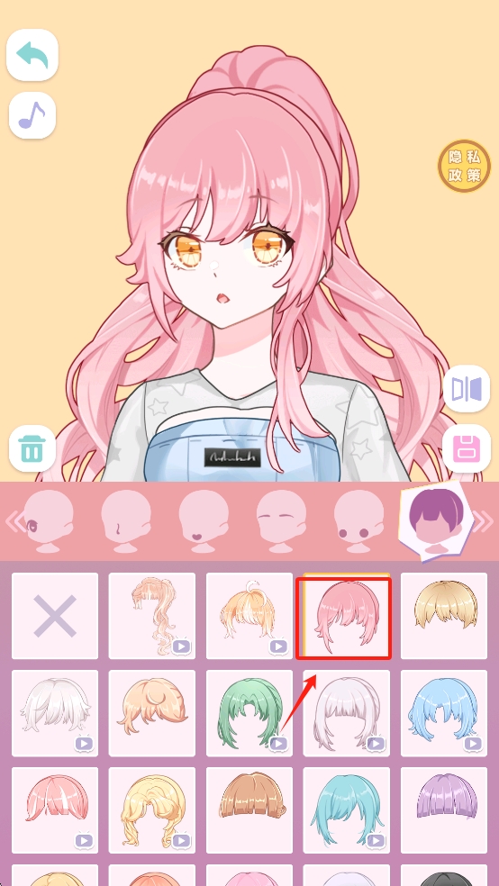 4、在编辑界面中,选择不同的发型和发色来打造你的角色形象。