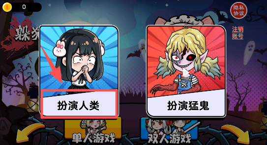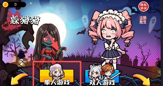 1、点击“单人游戏”按钮,选择你的游戏模式,开始你的躲猫猫挑战。