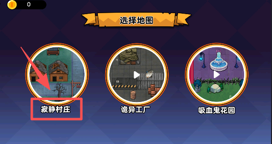 4、在地图选择界面,点击“寂静村庄”或其他地图,选择你想要进行游戏的地图场景。