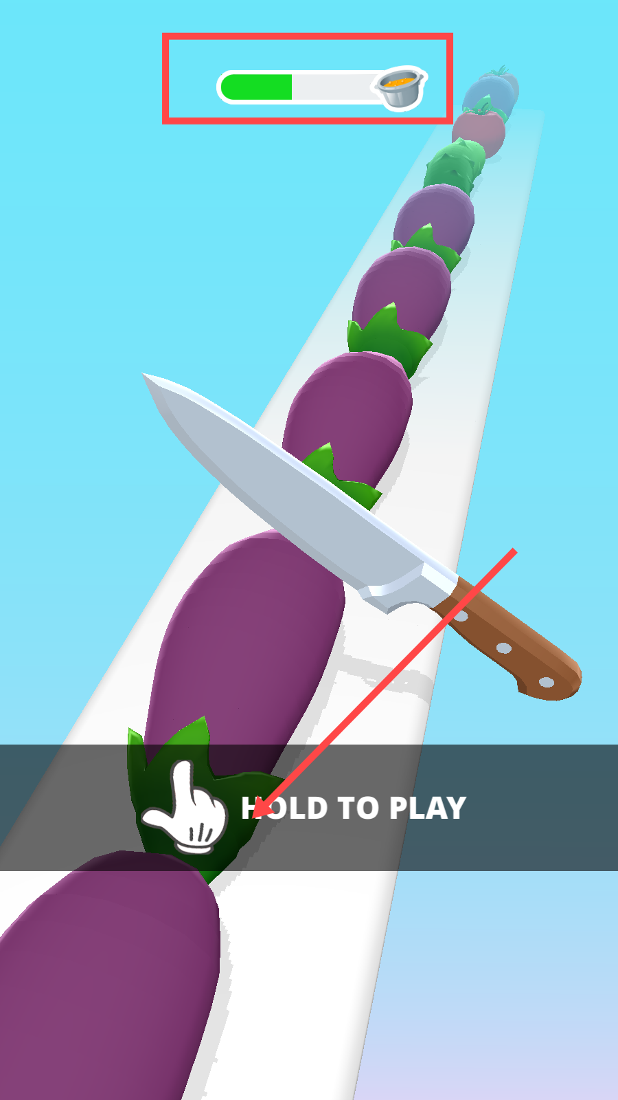 1、看到界面上的进度条和【HOLDTOPLAY】提示,按住屏幕开始游戏,留意进度条避免超时。