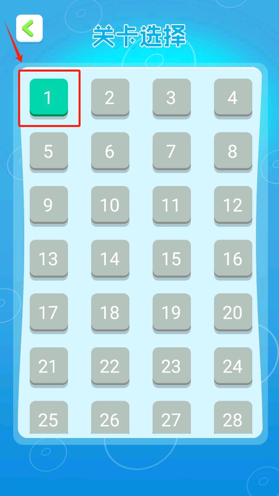 2、在关卡选择界面点击“1”进入第一关。