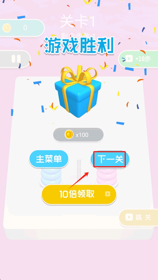 4、完成关卡后,点击下一关按钮可以继续挑战下一个关卡。