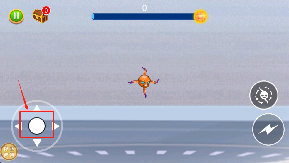 4、在游戏过程中,使用屏幕左下角的虚拟摇杆控制角色移动。