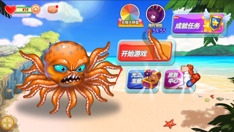 1、操控初始的小章鱼角色,勇敢地在充满活力和神秘的海底世界展开一场精彩刺激的冒险与竞技。