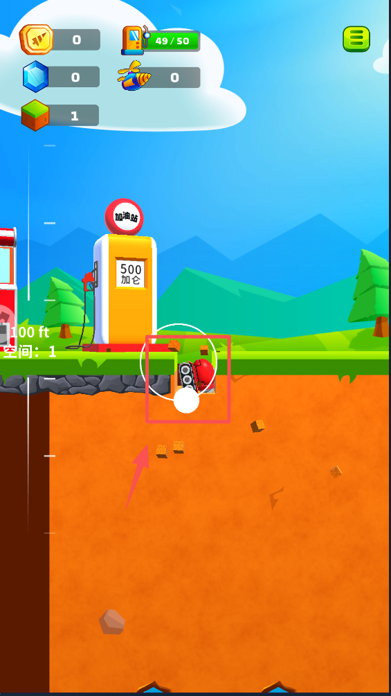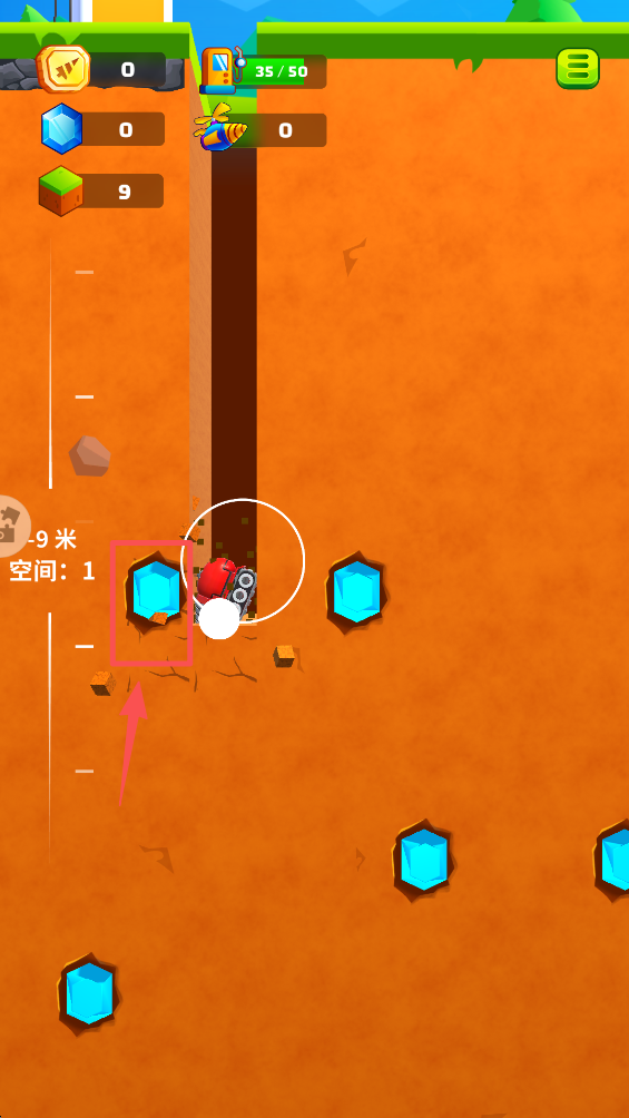 1、开始游戏后,操作钻地机向地底挖掘,注意收集途中的资源,如蓝色晶体等。