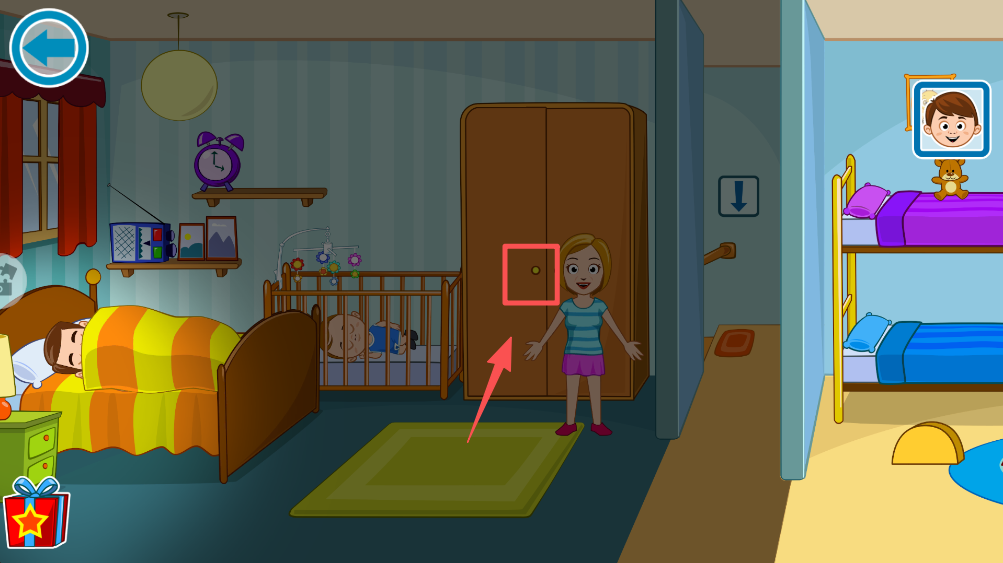 4、在儿童房中,点击礼物盒,获取奖励。注意观察房间内的物品,它们可能隐藏着线索。