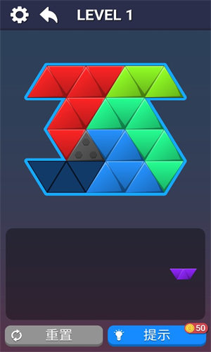 在游玩图案之谜的过程中,玩家可以选择三角形、正方形或者异形等不同的目标形状进行挑战。根据难度的变化,每个关卡中的拼图数量也会不同,随着难度的增加而增加。同时,游戏提供了贴心的重置、提示功能,帮助玩家在陷入僵局的时候打开思维。