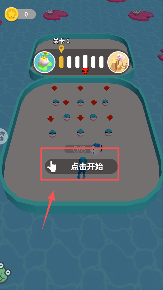 1、点击“点击开始”按钮,进入游戏关卡。这是进入游戏的第一步,准备开始你的挑战。