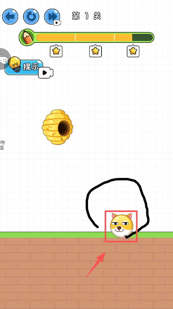 1、玩家需用手指滑动屏幕,一气呵成画出封闭或有效图形,阻挡蜜蜂接近狗头,保护目标不受攻击,这是游戏的基本操作。