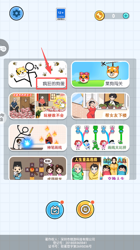 1、点击“疯狂的狗蛋”图标,进入游戏,开始你的挑战。