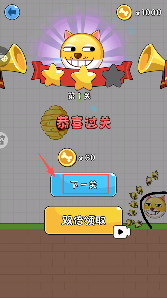 4、过关后点击“下一关”按钮,继续游戏,挑战更高难度。