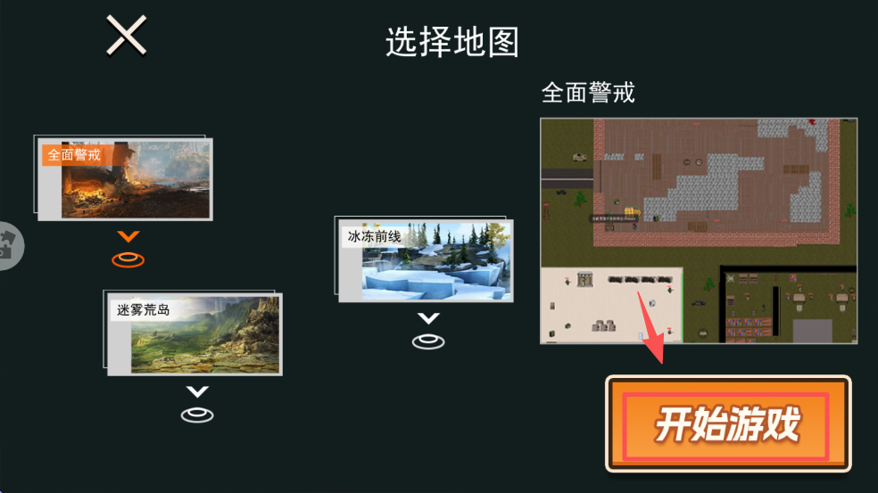 3、然后,在地图选择界面中点击“开始游戏”按钮,进入游戏,选择你的战场。
