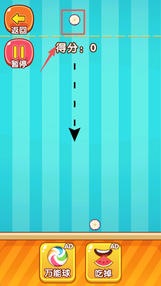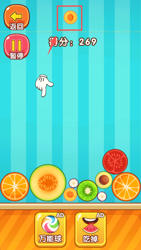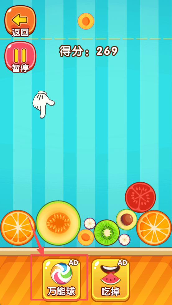 4、可以使用“万能球”道具来帮助你更容易地合成水果。