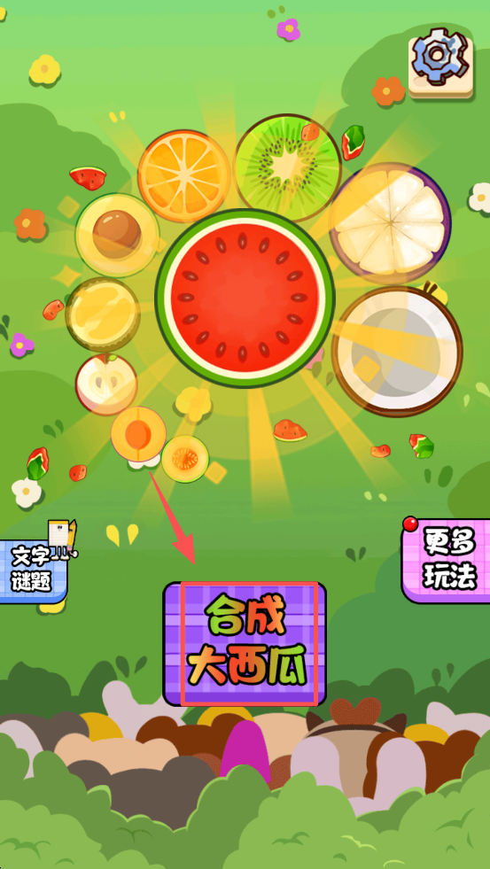 1、点击“合成更大的水果”,开始游戏,最终目标是合成一个大西瓜。