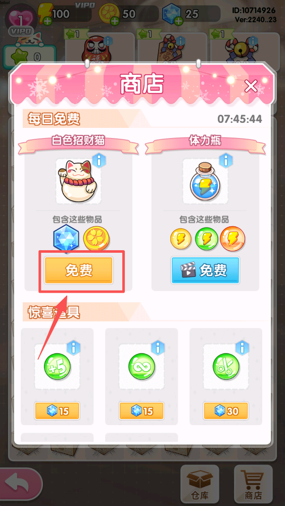 4、最后,访问商店领取每日免费奖励,获取额外的游戏资源和道具。