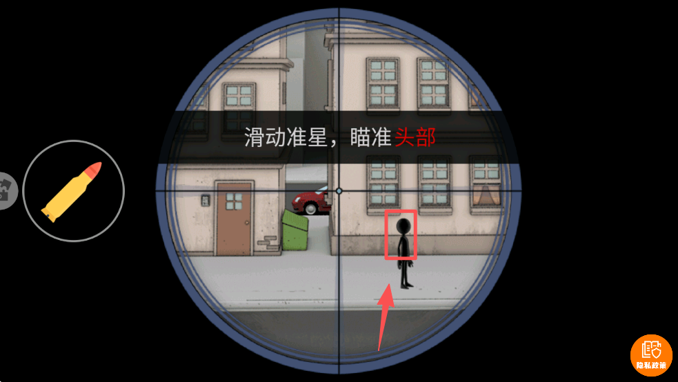 4、最后,在瞄准界面滑动准星瞄准目标头部,精确射击,完成任务目标。