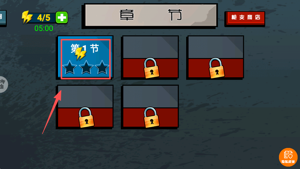 2、接着,在章节选择界面点击解锁的章节,进入关卡,开始你的狙击挑战。
