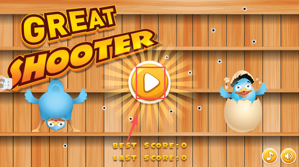 1、点击播放按钮开始游戏。游戏界面会显示当前得分、时间、剩余子弹数。