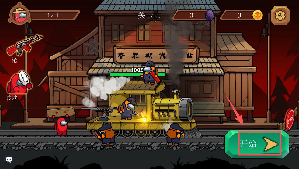 1、首先,点击主界面上的“开始”按钮,进入游戏关卡选择界面,准备开始冒险。