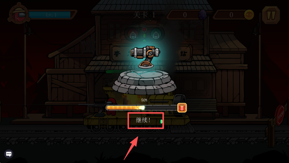 4、最后,关卡结束后点击“继续”按钮,领取奖励并进入下一关,持续前进。