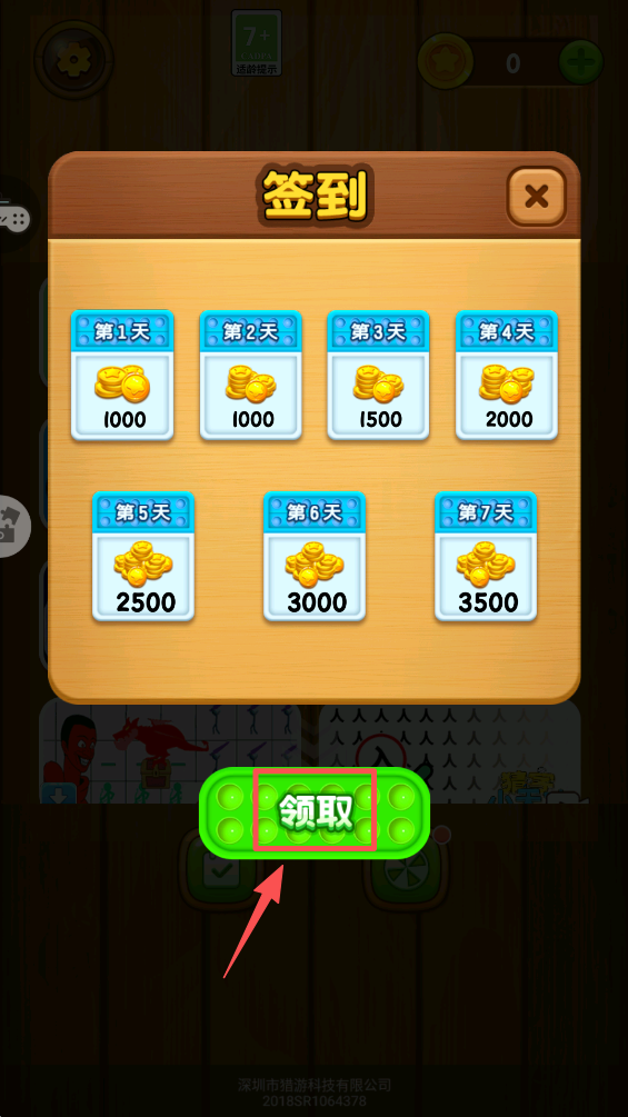 2、每日签到获取金币,点击“领取”按钮,积累你的游戏财富。