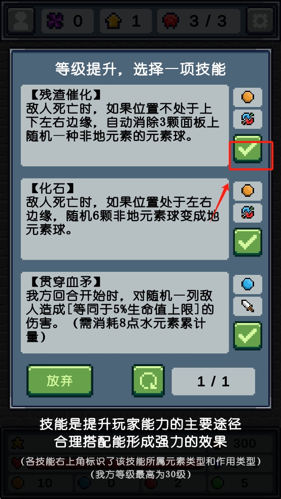 2、等级提升后,选择一项技能,如 “残渣催化” 技能。
