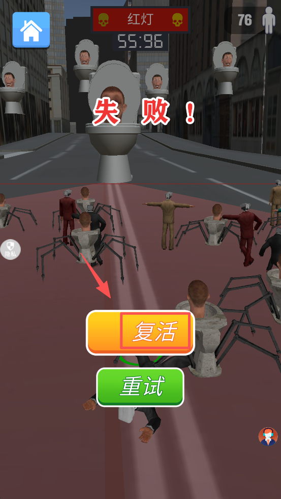 4、如果被敌人发现,游戏失败,可以选择“复活”继续游戏。