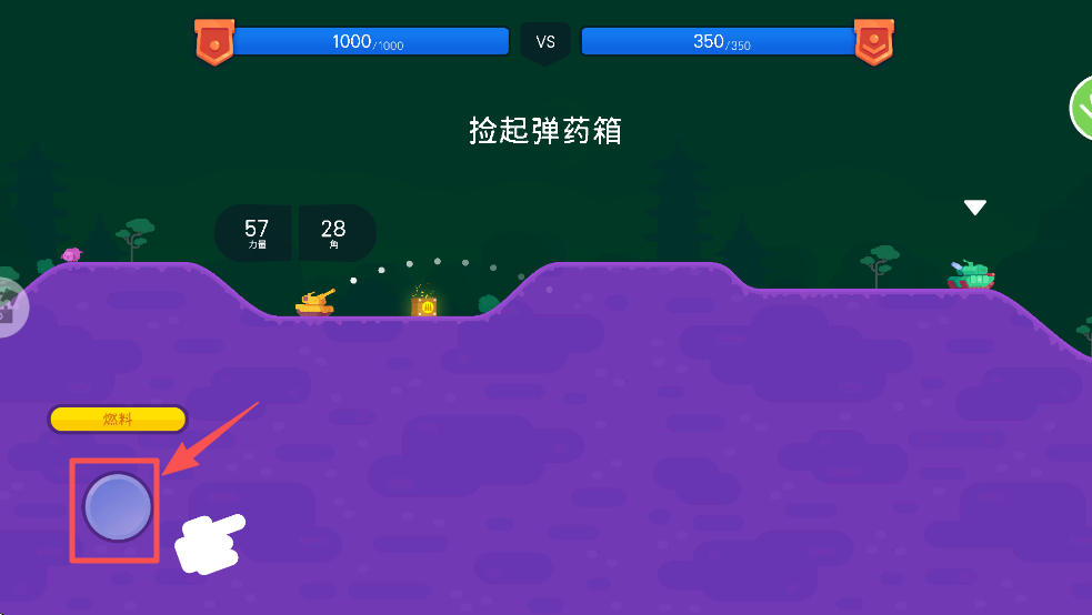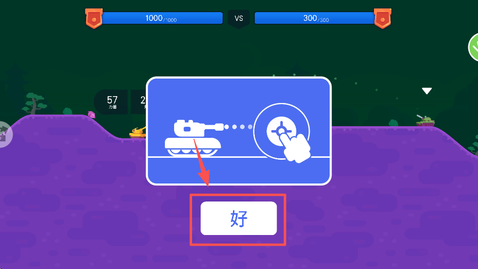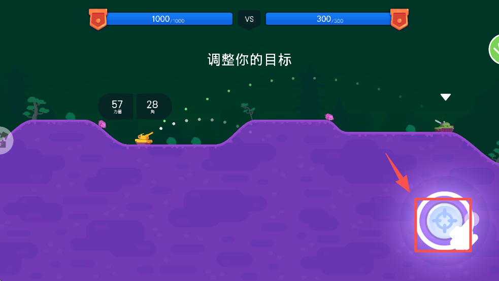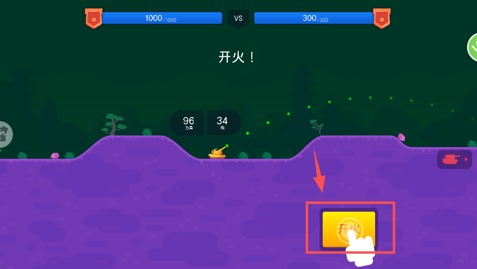 2、接着,滑动屏幕调整坦克的射击方向,点击射击按钮进行攻击。